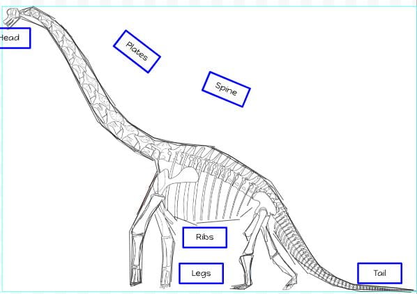 Today, I was reading about dinosaurs and this group of dinosaurs used to live in New Zealand before they became extinct. They had long tails and very long necks to reach all the leaves from high up on the trees. I had to draw poly lines around my dinosaur skeleton to give him a skin and then I moved the parts of its body across to the right place. I want to learn even more about these dinosaurs too.