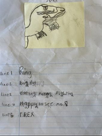 on. I made a doodle picture and then saw a dinosaur. Then I made a poem about a Velocisaurus. This is my Cinquain Poem